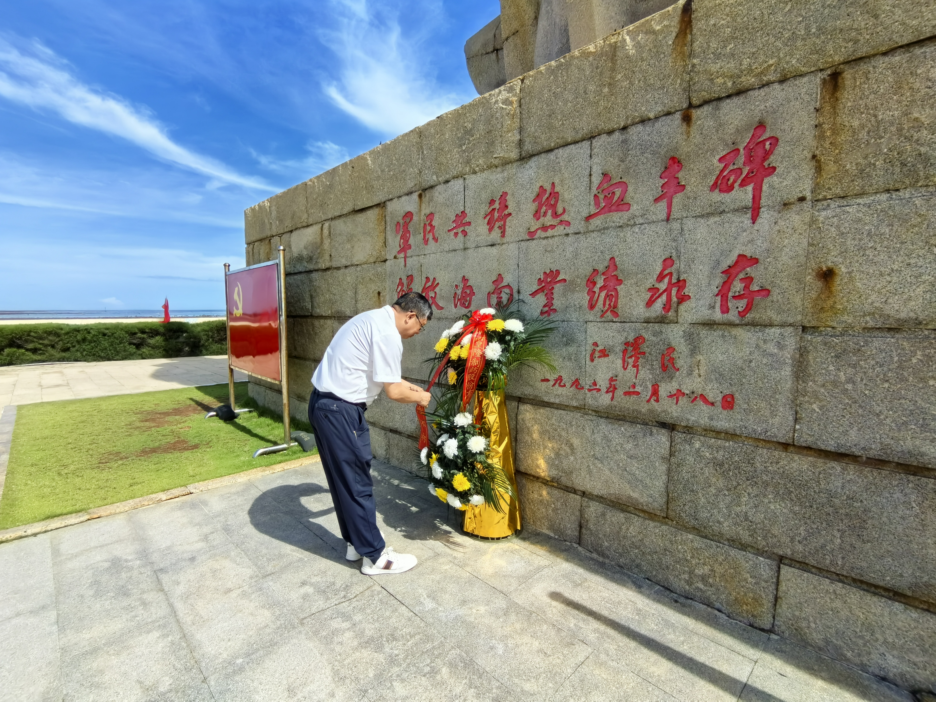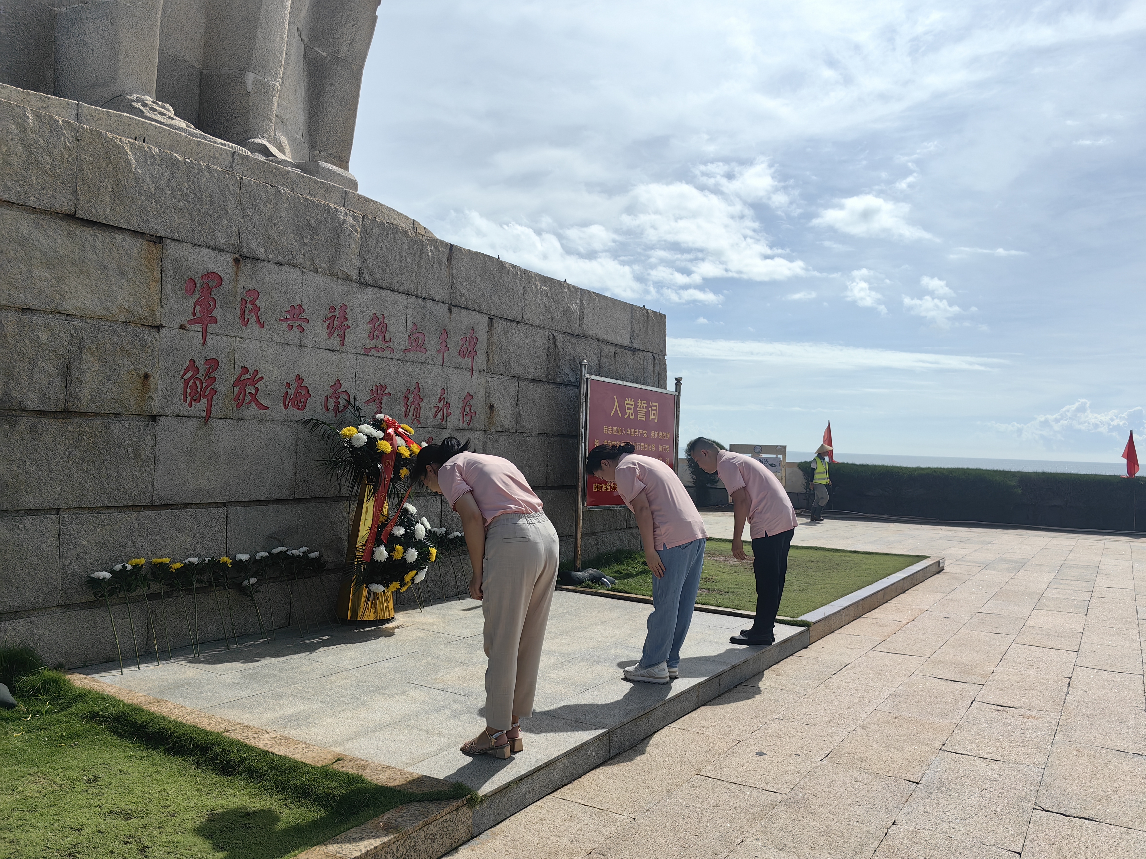 在莊嚴肅穆的“熱血豐碑”前,全體人員整齊列隊,懷著無比崇敬的心情,獻花鞠躬,向為海南解放事業獻出寶貴生命的革命先烈致以最深切的緬懷和最崇高的敬意。 |