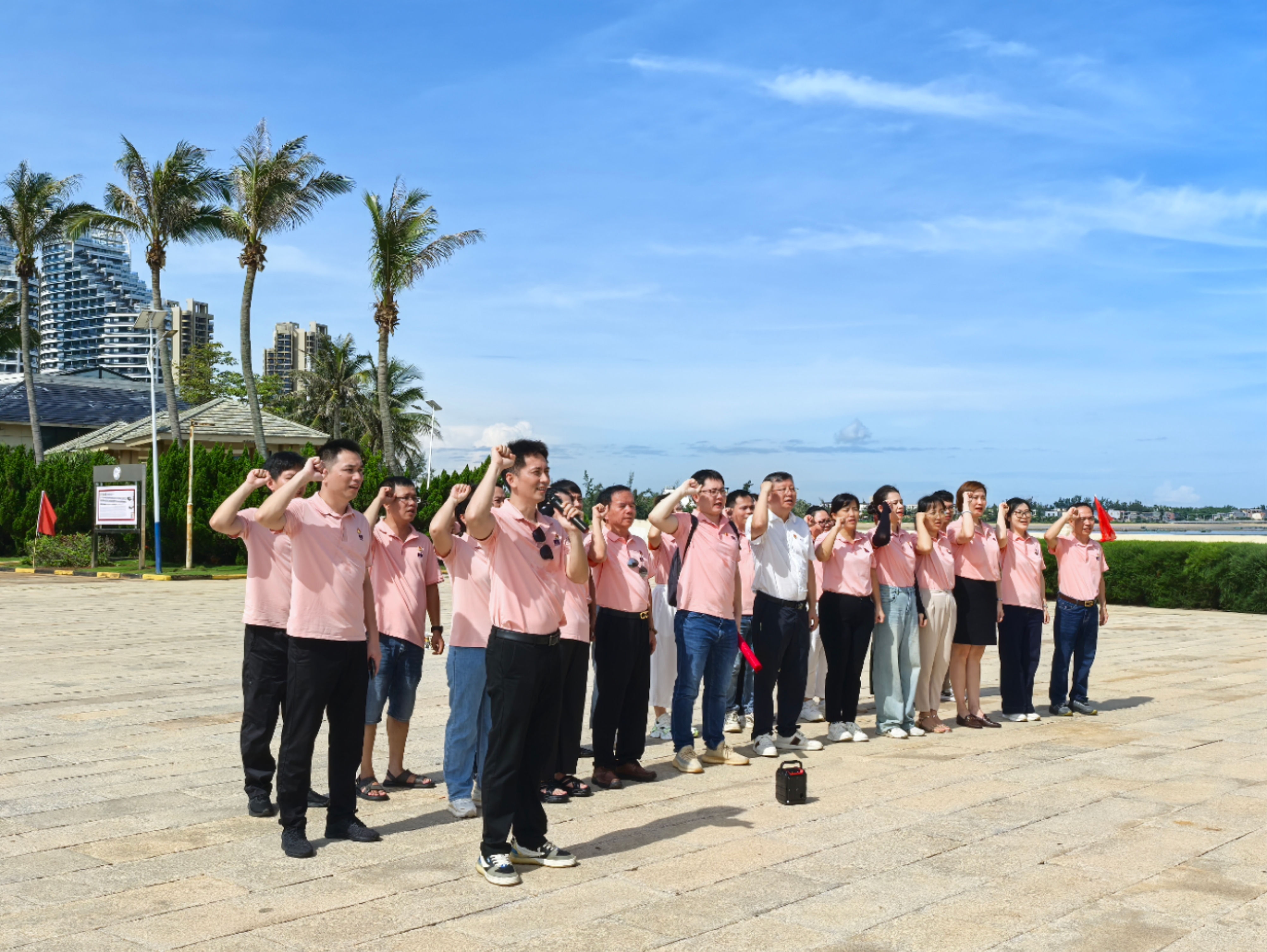 為熱烈慶祝中國共產黨成立104周年,激勵全體黨員及部門負責人傳承紅色基因、汲取奮進力量,以更加昂揚的姿態投身海南自貿港建設偉大事業,皇隆制藥黨委于6月29日精心組織開展了“迎‘七一’銘初心,建功自貿港”主題教育活動。公司全體黨員及各部門負責人齊聚海南解放公園,共同上了一堂生動深刻的革命歷史與黨性教育實踐課。